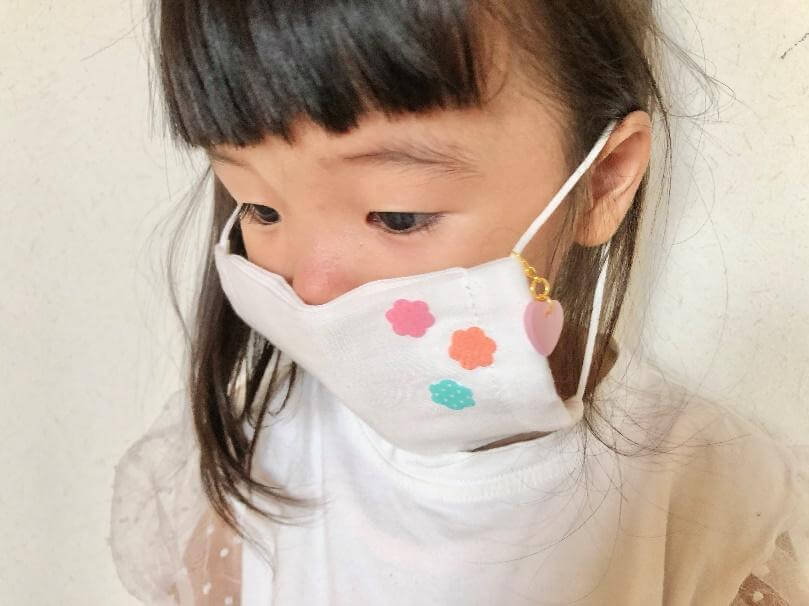 アクセサリーのようなチャームとかわいい花柄にテンションが上がったよう♡このマスクでお買い物に行ったのですが、途中で外すことなく買い物ができ、終始「このマスクかわいいね~」とご機嫌でしたよ。