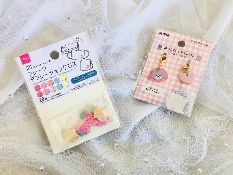 そんな時に発見したのが、100円ショップ「ダイソー」の「フレークデコレーションクロス」と、「セリア」の「amifaなかよしアニマル」です!この2つ、マスクをおしゃれにデコレーションできるマスクアクセサリー。