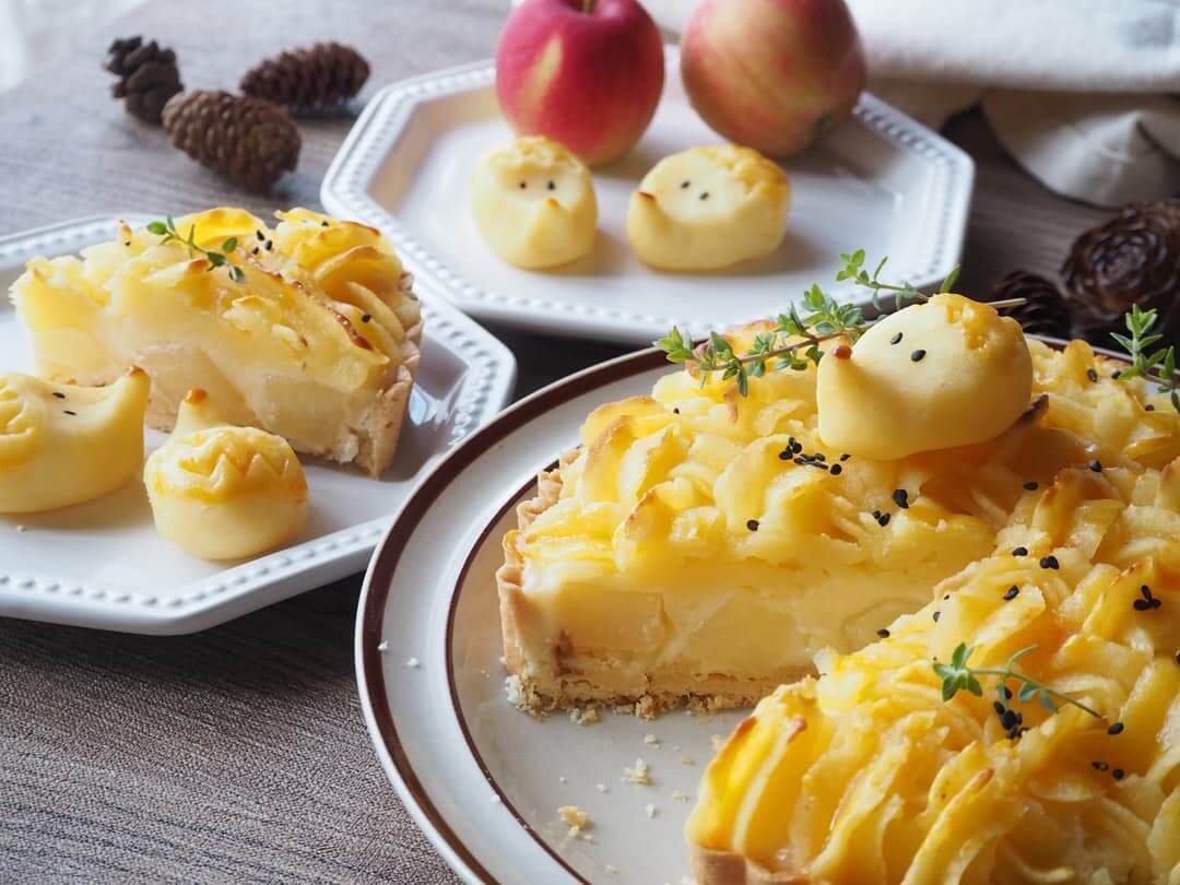 こちらはスイートポテトタルト♡タルトの上やまわりに、ツンと上向きの鼻が特徴のハリネズミのお顔のスイートポテトがあしらわれています。こんなお顔だけバージョンもかわいい!