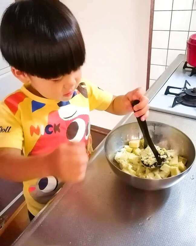 畑で収穫したサツマイモを使って親子でスイートポテト作り♪前から作ってみたかったというハリネズミの形に挑戦!
