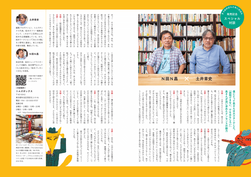 巻末には長新太さんをよく知るN⽥N昌さん(放送作家)と⼟井章史さん(編集プロダクション・トムズボックス代表)のスペシャル対談付き!