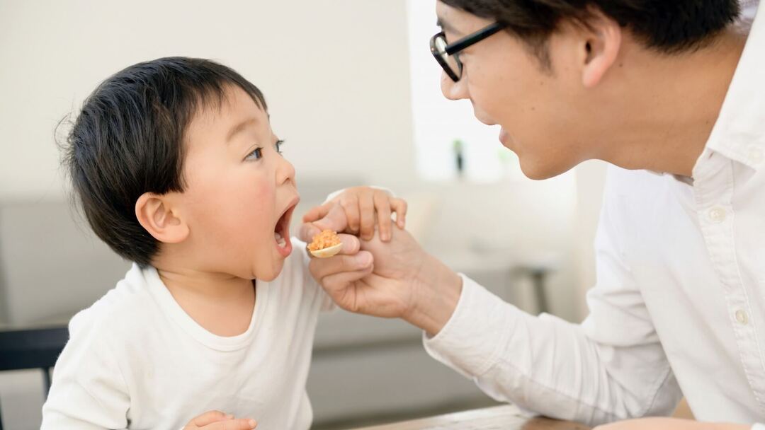 例えば、食事の進み具合が遅いときは、「早く!」ではなく、「おかずが減ってないよ、大きなお口で食べようね」。
