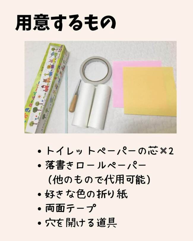 用意するものはこちら!ロールペーパーさえ用意すれば、あとは身近な材料で作ることができます。
