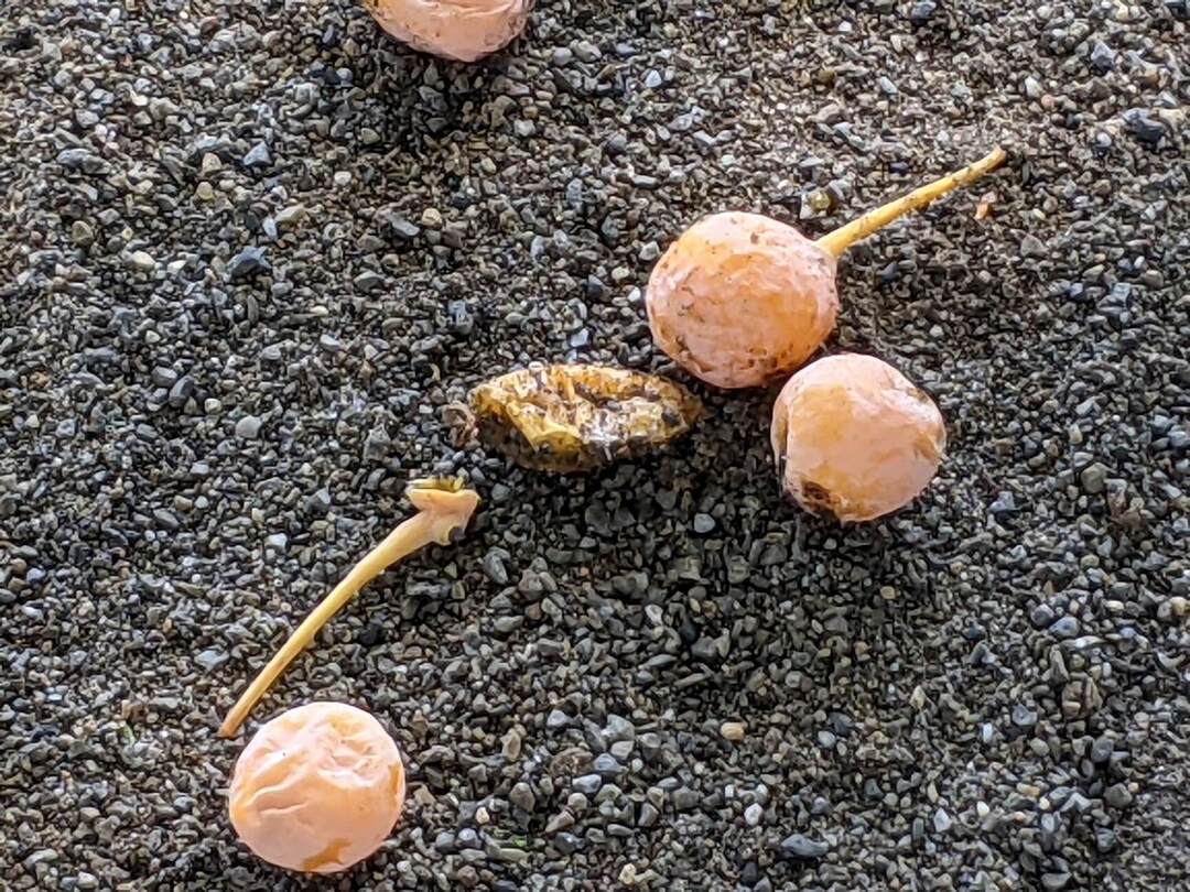 まわりに落ちている実はぎんなん。踏んでつぶれるとくさい~!でも"くさいもの"って子どもはなぜか興味持つんですよね。ぎんなんは食べることもできます。