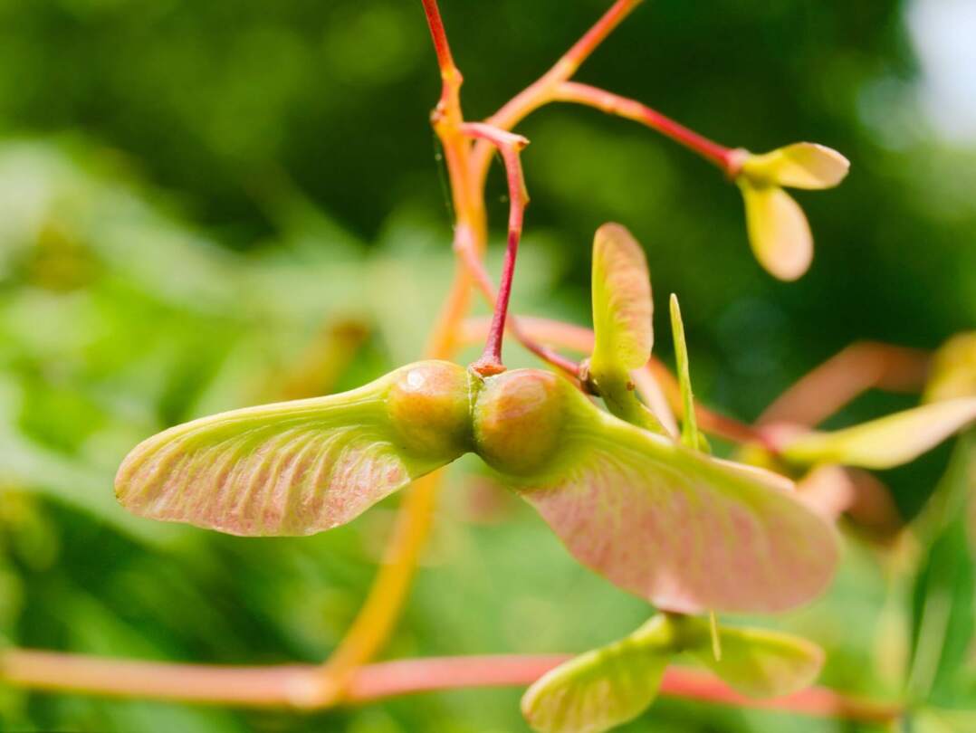 2つ向かい合った実も特徴的。葉の周りに落ちていないかチェックしてみよう!