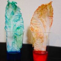 1時間でみるみる変化が!青い白菜、赤いアスパラも!?野菜や花を使って色水を...